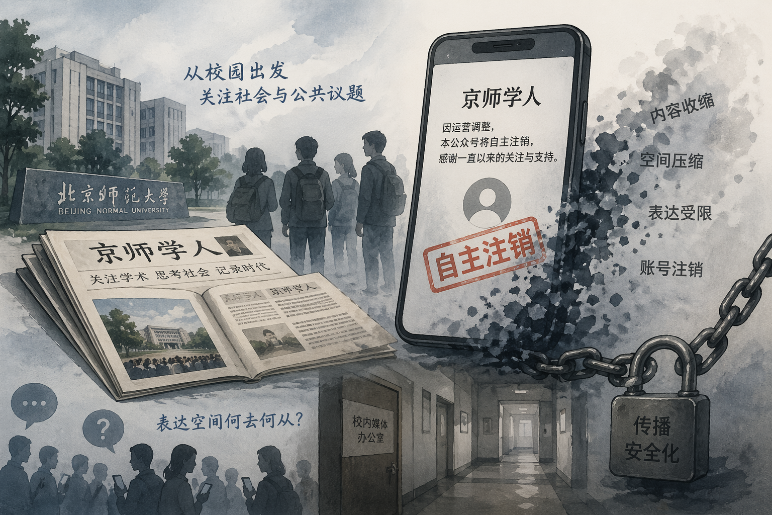 2026-03-31一个校园媒体的消失,本不应成为国际议题,但当其被置于全球信息治理与传播安全化语境中,便不再只是个案,而成为观察中国传播秩序演变的一个切口。 文/石敢当 从校园副刊到公共表达平台 《京师学人》隶属于北京师范大学校报体系,长期由学生团队运营,最初定位为校内副刊。随着数字平台的发展,其传播重心逐步转向微信公众号,内容形态也发生明显变化:从以校园新闻为主,逐渐扩展至学术议题、社会观察乃至公共评论。 这种演变并非孤例。在不同国家的高校体系中,学生媒体通常既是新闻实践的训练平台,也是青年参与公共讨论的重要入口。《京师学人》的特殊性在于,其议题不断外溢,逐渐突破校园边界,进入更广泛的社会议题空间。这使其在事实上具备了一定的“准公共媒体”属性,尽管其制度身份仍然属于校内组织。 “自主注销”的制度语境 根据公开信息,《京师学人》在经历多年内容调整与运营收缩后,于2026年以“自主注销”的形式停止运营。从表述上看,“自主注销”强调的是组织行为,但在现实语境中,这一选择往往嵌入于更宏观的制度环境之中。 近年来,中国高校新媒体经历了一轮较为明显的整合与规范化过程,大量学生组织的账号被清理或合并,校园传播逐步回归更加清晰的管理体系。在这一过程中,学生媒体普遍面临三方面变化:内容边界趋于明确、组织责任向上集中、表达风险逐渐显性化。 当这些因素叠加时,依赖相对弹性空间运作的学生媒体,其生存条件会发生结构性改变。《京师学人》的退出,可以被视为这一变化在具体个案中的体现。 外媒为何关注这一事件 包括BBC、《德国之声》在内的一些国际媒体,对该事件进行了报道。其关注点并不局限于一个校园账号的消失,而是将其置于更宏观的叙事框架之中。 从外部视角看,这一事件通常被解读为中国青年表达空间变化、高校舆论生态调整以及信息治理逻辑强化的体现。不过,需要注意的是,这种解读本身具有一定的框架依赖性。外媒往往将个案纳入既有认知结构,从而强化其对中国信息环境的整体判断。...